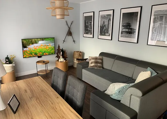 Apartament Everyseason Karpacz van 60 m² heeft een terras en ligt op 4 km van de Berg Sniezka. Als u een reis naar Karpacz plant voor een ski-avontuur, dan kunt u bij dit appartement een skiopslag en skiverhuur vinden.